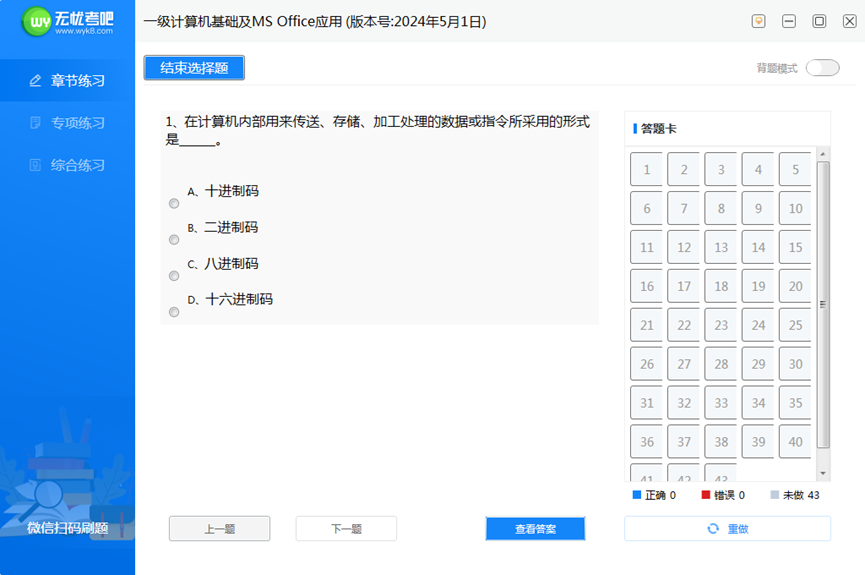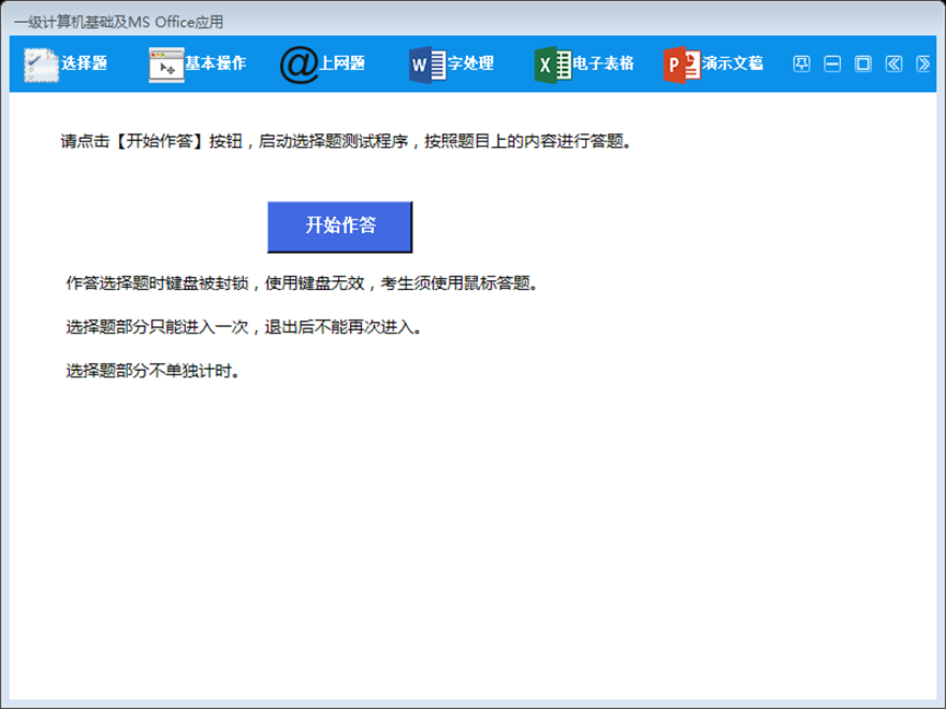 (3)综合练习:模拟计算机等级考试。注意选择题只能进入一次,退出后不能再次进入。