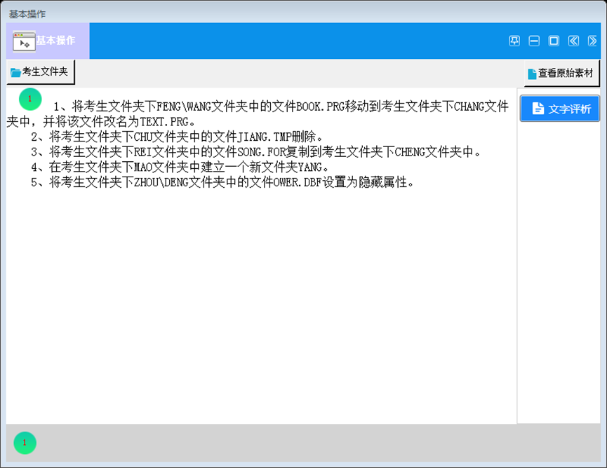 单击【开始练习】,在操作界面中有文字评析。文字评析里面有操作的步骤供练习者参考。