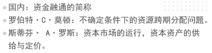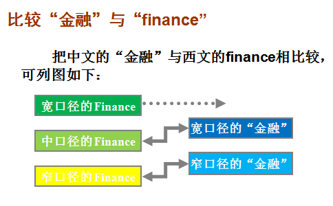 2. 最狭窄的诠释:与资本市场有关的运作机制。在国外经济学界,这样的用法通行。上面提到的近年在我国开始流行的对“金融”的狭义解释,即来源于国外对finance的这种用法。