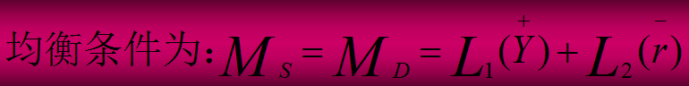 当货币供给等于货币需求时,货币部门达到均衡。即。其中L1(Y)是收入的递增函数,L2(i)为利率的递减函数。