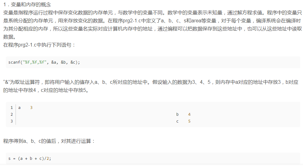 2)系统根据变量的类型为变量在内存中开辟存储单元。例如,变量a定义为short,系统会为变量a分配两个字节的内存,可以存放一个整数,变量x定义为float,则系统为变量x分配4个字节的内存,可以存放一个实数。