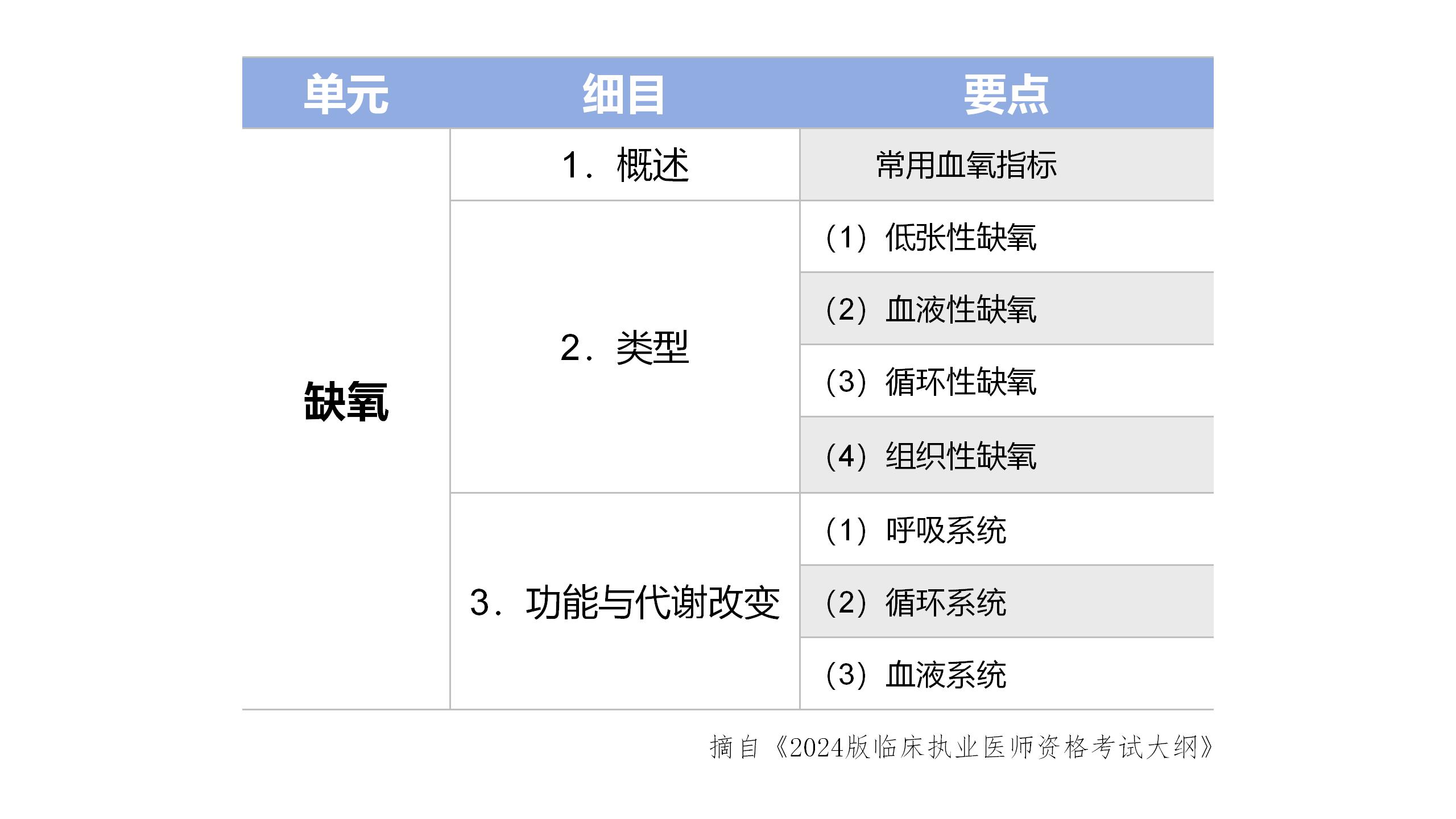 4.1 【大纲速递】执业医师资格考试大纲:缺氧