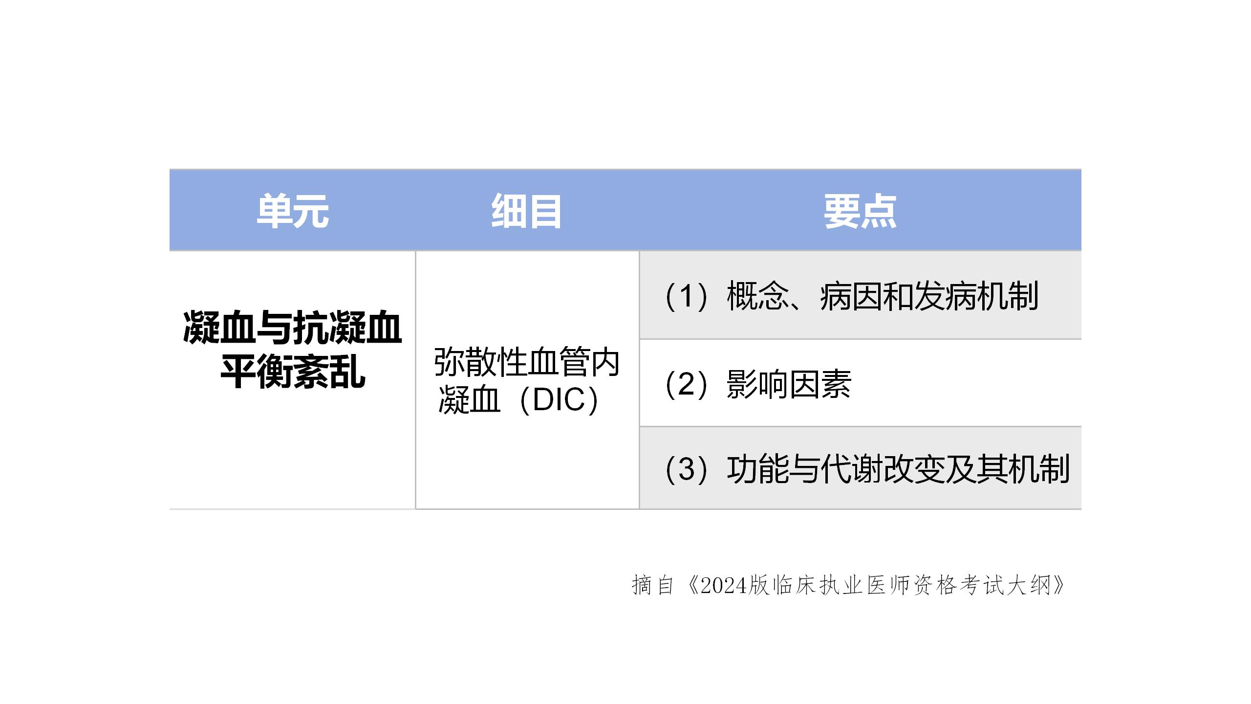 9.1 【大纲速递】执业医师资格考试大纲:凝血与抗凝血平衡紊乱