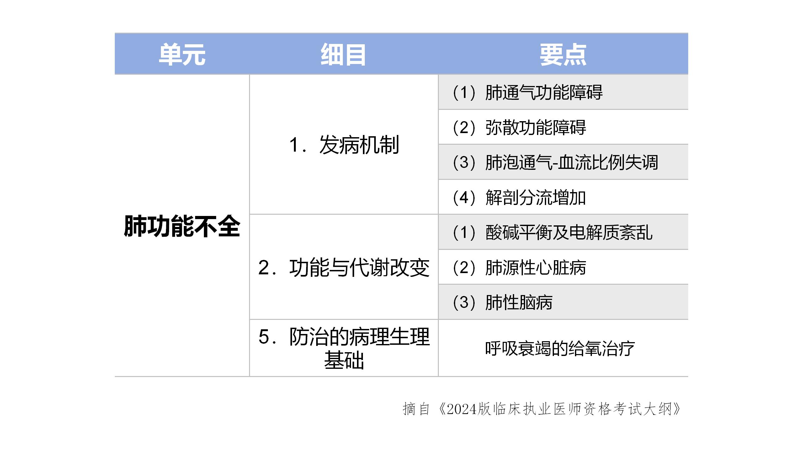 11.1 【大纲速递】执业医师资格考试大纲:肺功能不全