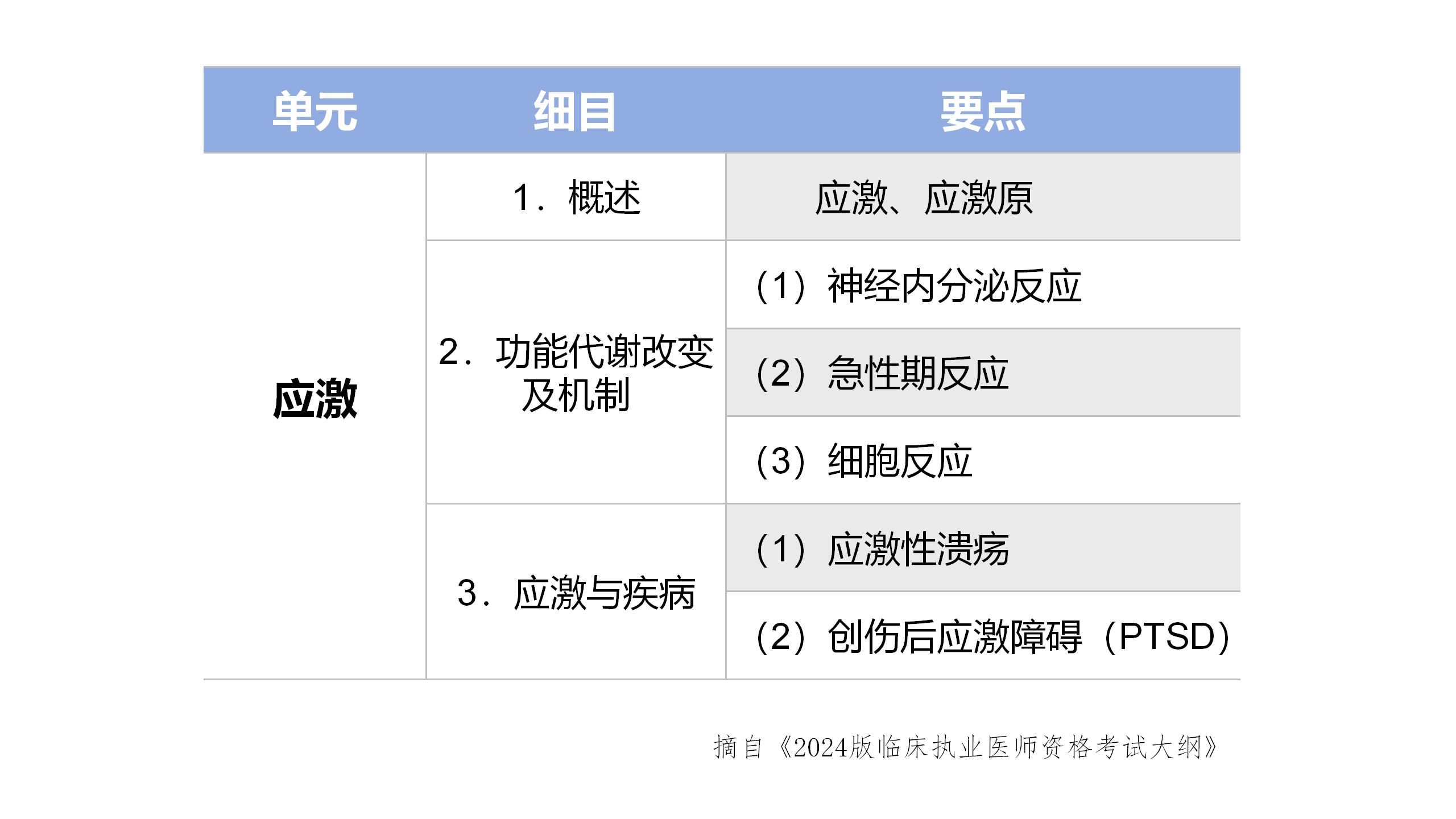8.1 【大纲速递】执业医师资格考试大纲:应激
