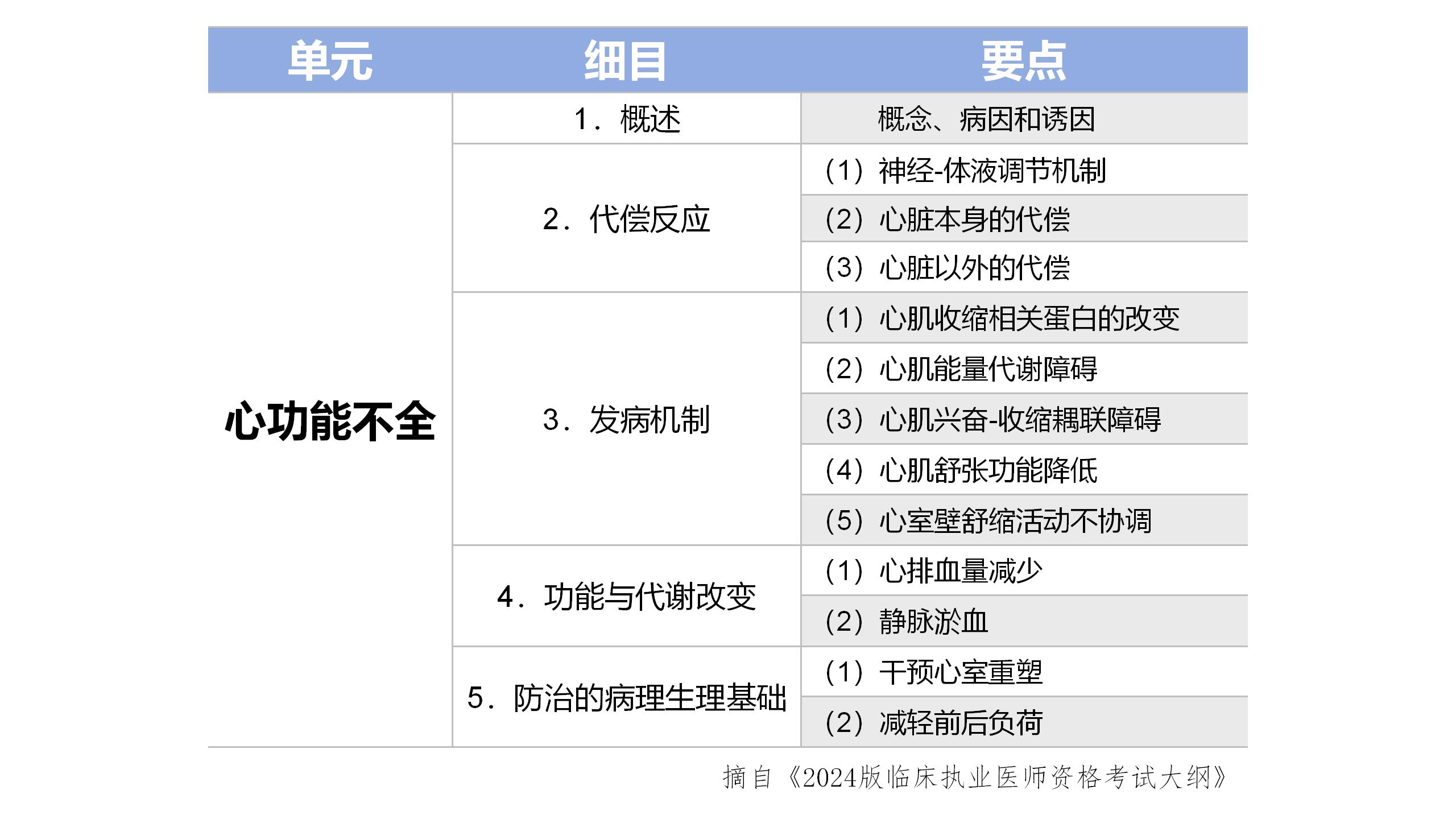 10.1 【大纲速递】执业医师资格考试大纲:心功能不全