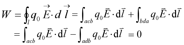 静电场的环流定理:在静电场中,场强E的环流恒等于零。(静电场是保守场)