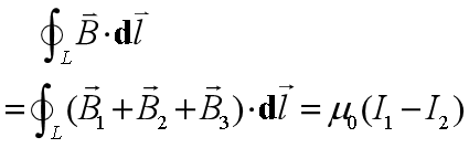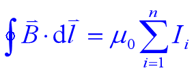 安培环路定理:在稳恒磁场中、磁感应强度B沿任意闭合回路的积分等于穿过闭合回路的电流的代数和的倍。即: