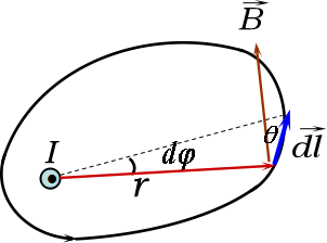 注意电流 I 正负的规定: I 与 l 成右螺旋时, I 为正; 反之l为负。