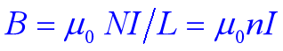 例1. 长直载流螺线管内的磁场分布(忽略边缘效应),已知:I、n(单位长度导线匝数)