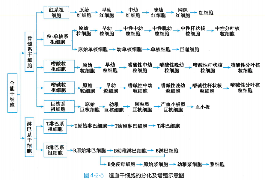 血细胞从原始到成熟的发育过程中(图4-2-5),有一定的规律性,了解和熟悉这些规律对于辨认血细胞是十分必要的。