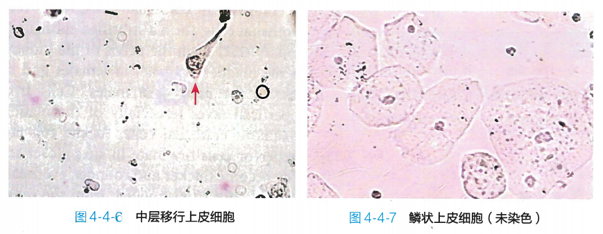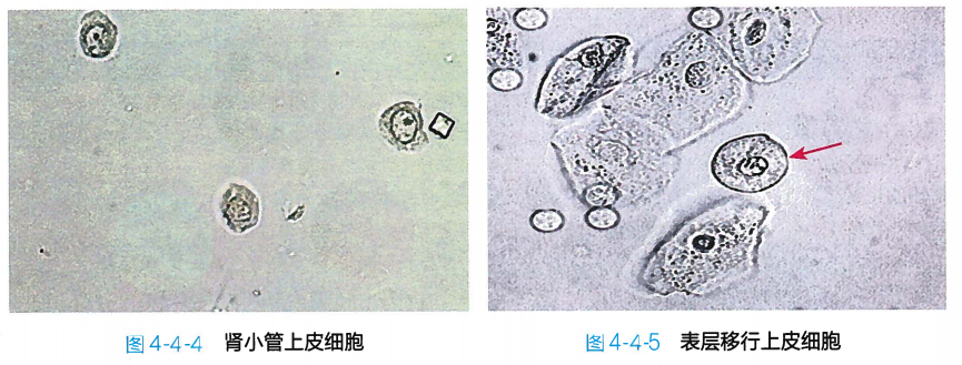 上皮细胞检查对泌尿系统疾病有定位诊断的价值。①肾小管上皮细胞数量增多提示肾小管有病变,见于急性肾小球肾炎、急进性肾炎、肾小管坏死性病人。慢性肾炎、肾梗死的病人肾小管上皮 细胞可发生脂肪变性,胞质内有较多的脂肪颗粒,称为脂肪颗粒细胞(fatty granular cell)。如果其颗粒较多,甚至覆盖于核上,又称为复粒细胞(compound ganular cell)。②移行上皮细胞数量增多 提示泌尿系统相应部位病变,膀胱炎、肾盂肾炎病人移行上皮细胞明显增多,并伴有白细胞增多。③鳞状上皮细胞数量增多主要见于尿道炎病人,并伴有白细胞或脓细胞数量增多。