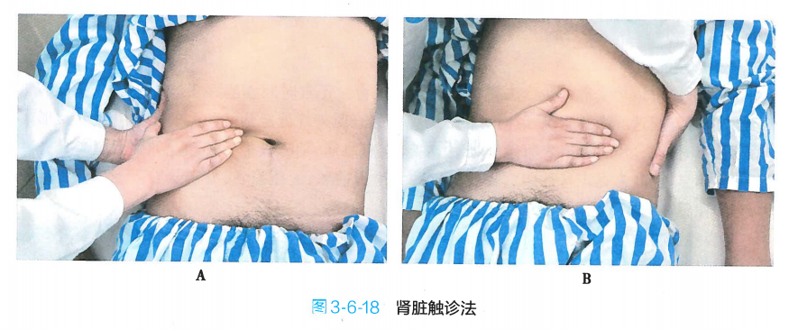 如病人腹壁较厚或配合动作不协调,以致右手难以压向后腹壁时,可采用 下法触诊:病人吸气时,用左手向前冲击后腰部,如肾下移至两手之间时,则右手有被顶推的感觉; 与此相反,也可用右手指向左手方向做冲击动作,左手也可有同样的感觉而触及肾脏。如卧位未触及肾脏,还可让病人站立床旁,医生于病人侧面用两手前后联合触诊肾脏。当肾下垂或为游走肾时,立位较易触到肾脏。