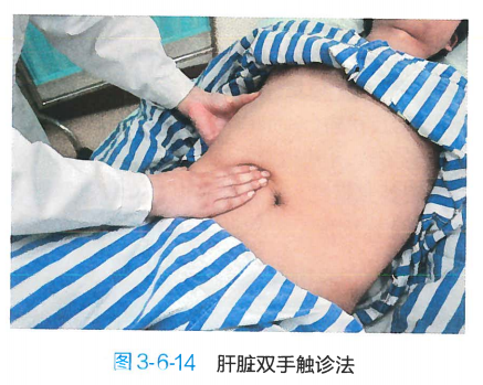 2)检查腹肌发达者时,右手宜置于腹直肌外缘稍外处向上触诊,否则肝缘易被掩盖或将腹直肌腱划误认为肝缘。