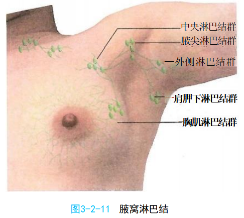 (3)肩胛下淋巴结群:位于腋窝后皱襞深部。