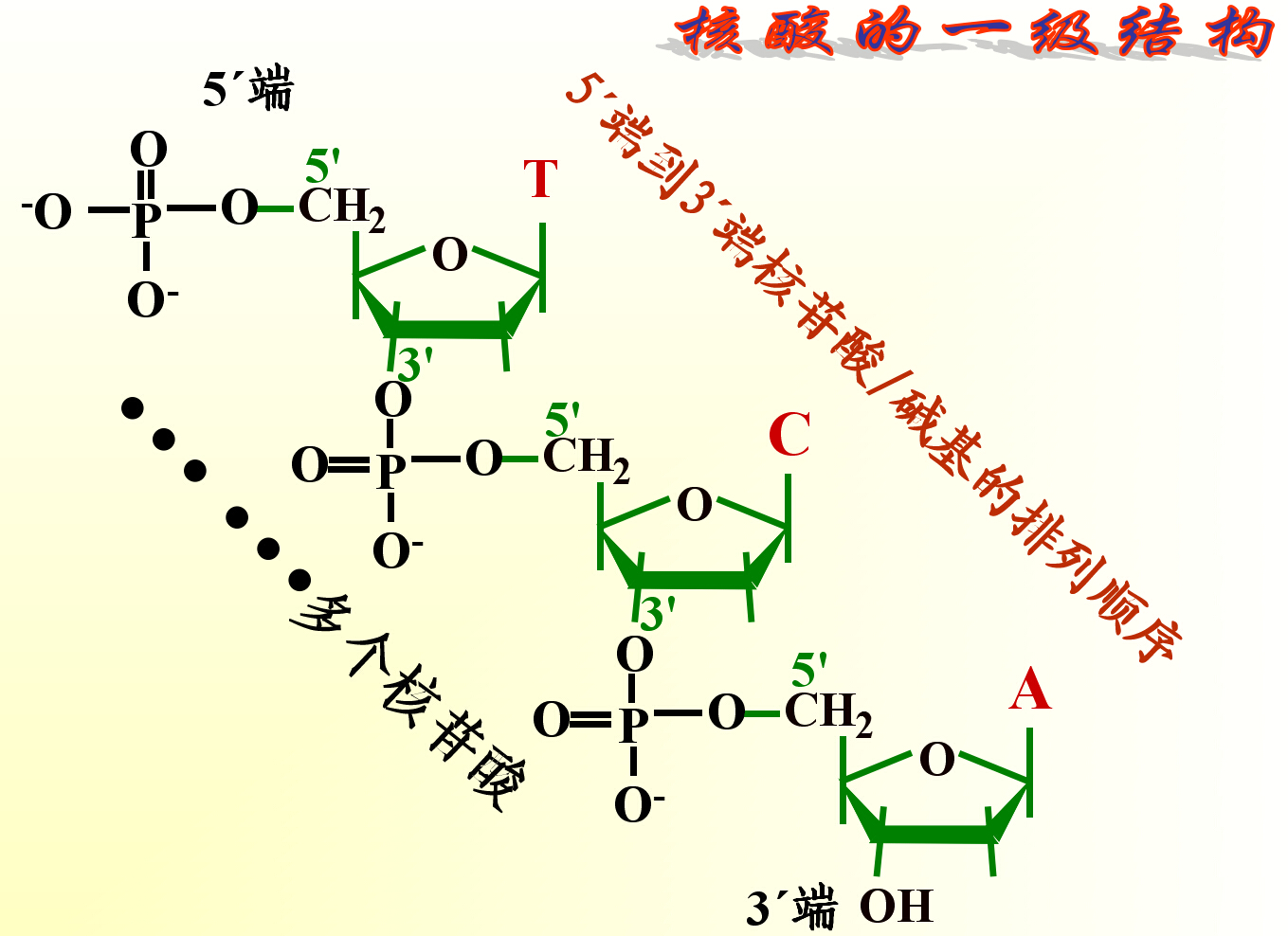 5’-pApCpTpG-3’,或5’…ACTG…3’(在DNA中,3/-OH一般是游离的)