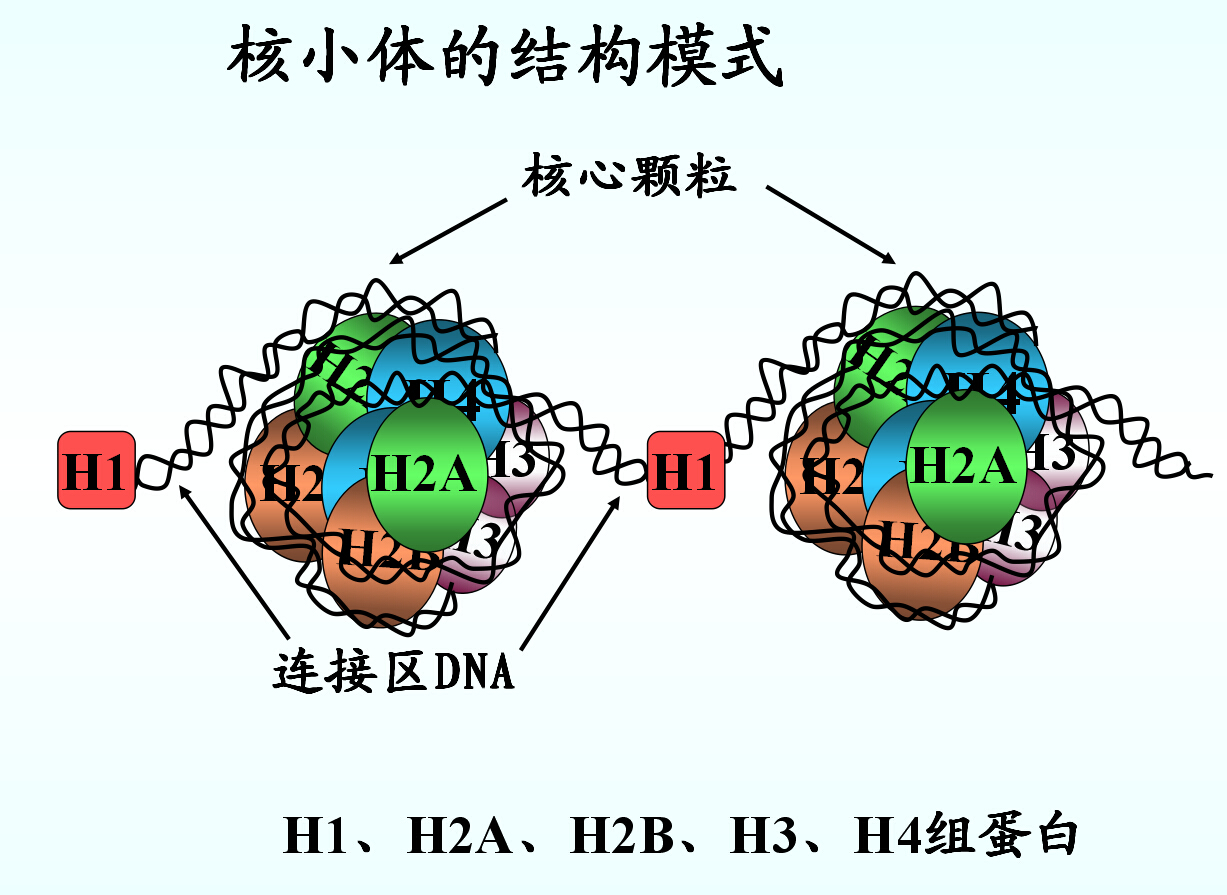 核小体间DNA长度15-100bp(一般60bp)其上结合有H1