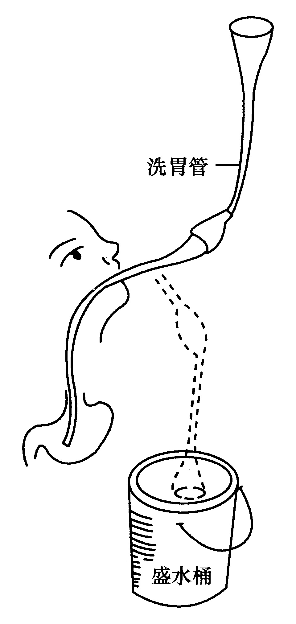 口服洗胃溶液,然后自动呕出的方法。适用于清醒愿意合作的病人。