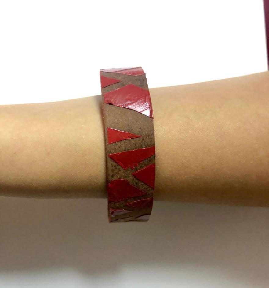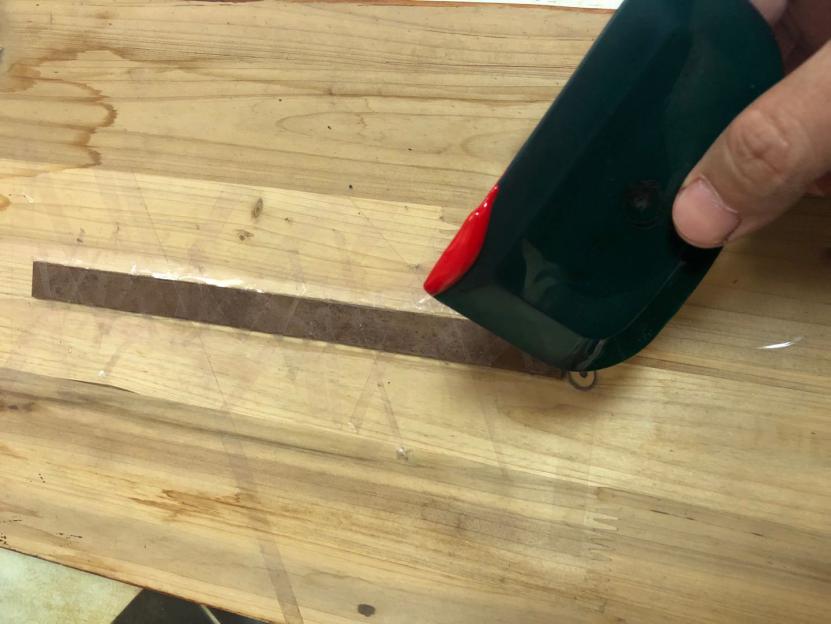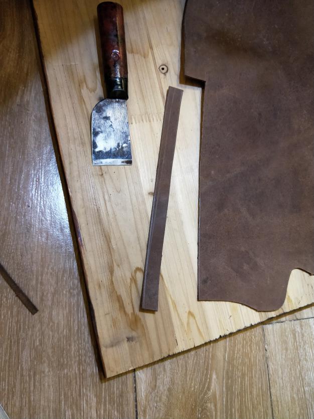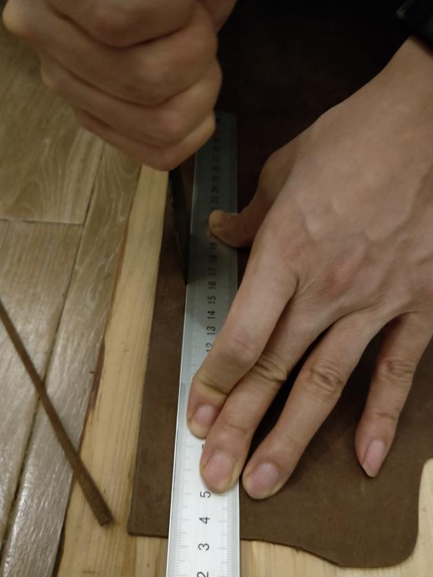 1用刀裁出需要的皮手镯尺寸(建议尺寸长23厘米,宽1.5厘米)