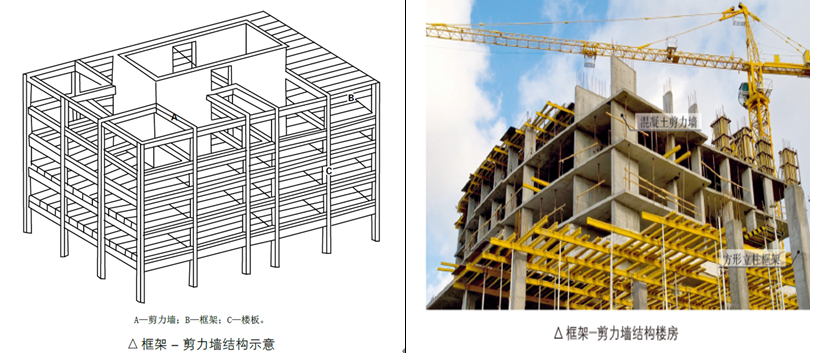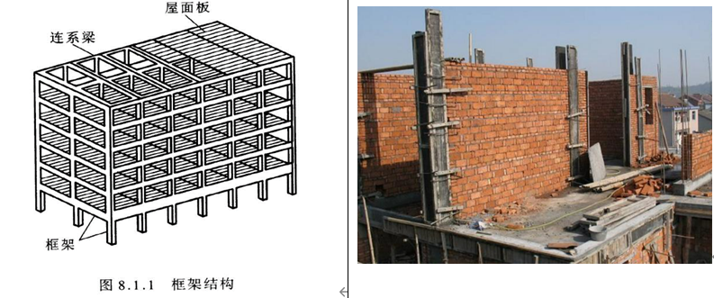 “青砖黛瓦马头墙,回廊飞檐花格窗”,承载着“老南宁”记忆的“三街两巷”、中山路、水街是南宁市保存最为完整的历史文化街区。为服务好2023年广西文化旅游发展大会,南宁市正全力推动“三街两巷”、中山路、水街一体化项目建设,通过修旧如旧、建新如旧的形式让老街巷重焕新颜。 任务三、框架-剪力墙结构 由剪力墙和框架共同承受竖向和水平荷载的结构称为框架-剪力墙结构。在框架-剪力墙结构中,剪力墙主要抵抗水平力。横向剪力墙布置,通常应均匀对称设置在建筑物端部附近,以及楼梯、电梯间和建筑平面形状变化及荷载较大的地方;纵向剪力墙布置,通常设置在结构单元的中间区段内。框架-剪力墙结构一般为钢筋混凝土结构,也有钢框架和钢筋混凝土剪力墙混合结构。 判断一栋楼房的框架-剪力墙结构,可在楼房砌筑过程中,观察楼房外立面得知。建筑物采用了钢框架和钢筋混凝土剪力墙混合结构,下图中立面宽大的即为混凝土剪力墙,四四方方的立柱即为框架结构。  软件提问 题目:判断下图是什么结构?(5分钟)  软件讨论 现在比较流行的建筑结构? 装配式结构(prefabricated concrete structure)是装配式混凝土结构的简称,是以预制构件为主要受力构件经装配\连接而成的混凝土结构。装配式钢筋混凝土结构是我国建筑结构发展的重要方向之一,它有利于我国建筑工业化的发展,提高生产效率节约能源,发展绿色环保建筑,并且有利于提高和保证建筑工程质量。与现浇施工工法相比,装配式PC结构有利于绿色施工,因为装配式施工更能符合绿色施工的节地、节能、节材、节水和环境保护等要求,降低对环境的负面影响,包括降低噪音、防止扬尘、减少环境污染、清洁运输、减少场地干扰、节约水、电、材料等资源和能源,遵循可持续发展的原则。 任务四、砌体结构 (1)砖混结构 用砖和砂浆砌筑而成的结构,称为砖砌体结构或砖混结构。其中,砖分为实心砖和空心砖两种。空心砖又分为承重多孔砖和非承重多孔砖。 (2)砌体砌块结构 用砌块和砂浆砌筑而成的结构,称为砌块砌体结构。其中,砌块分为混凝土砌块、硅酸盐砌块、工业废料砌块、石膏砌块、加气混凝土砌块等。砌体结构不适合高层建筑,因其强度较低,结构截面大、自重大,抗拉、抗折强度低,抗震性能差。砌体结构的毛坯房内没有横梁,也没有混凝土柱,因此很好判断。