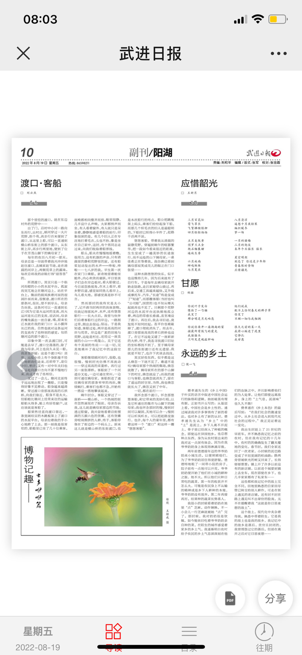 二、汉语191金子惠 诗歌月光(外二两首)发于武进日报阳湖副刊 2022/2/11