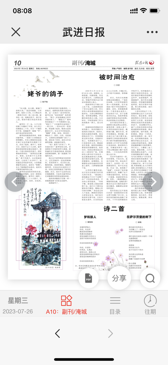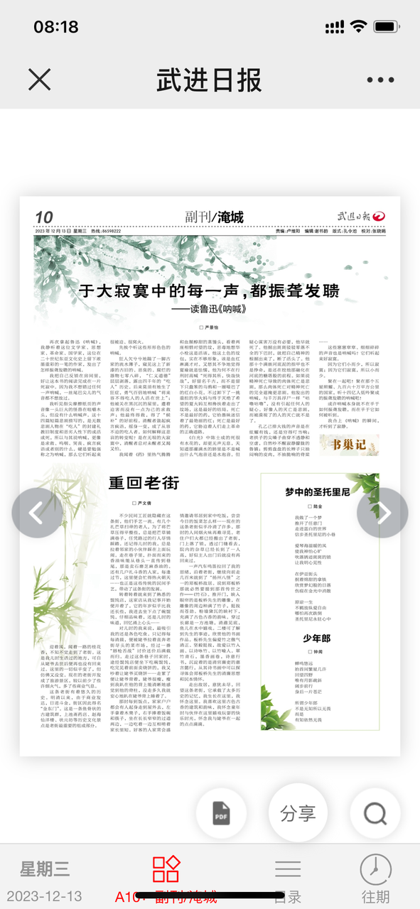 汉语211 张梦婷《故乡的恋歌》发于2023-08-02 武进日报副刊·淹城