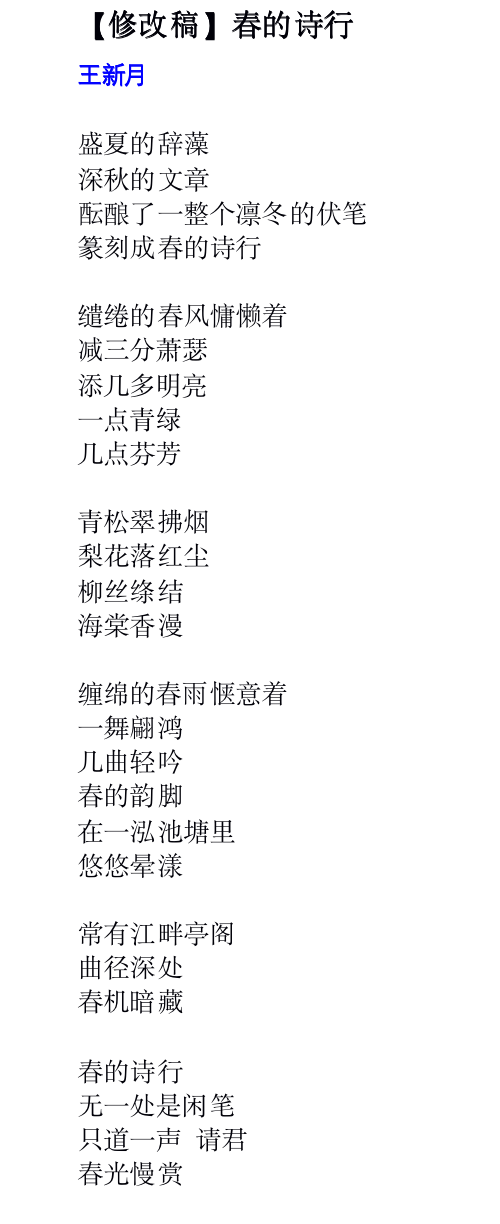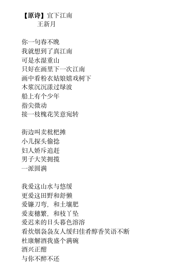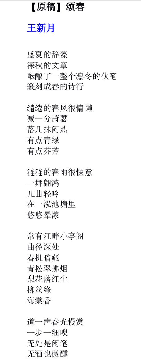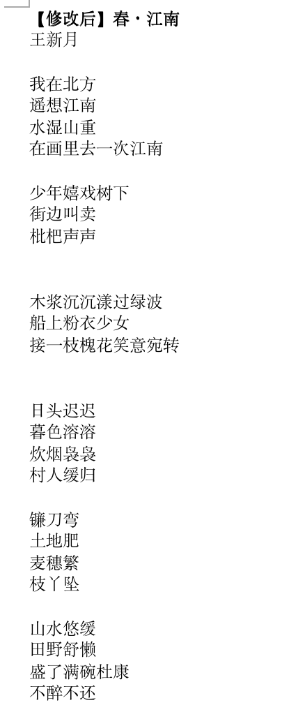 三、汉语201王新月的诗歌《春·江南》发于武进日报2022-04-08