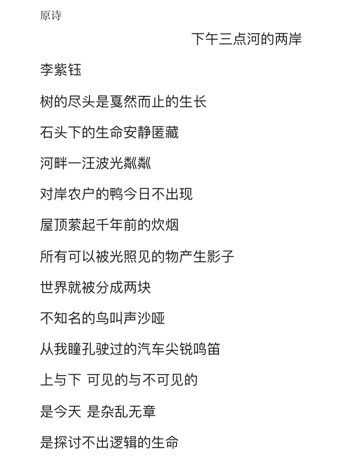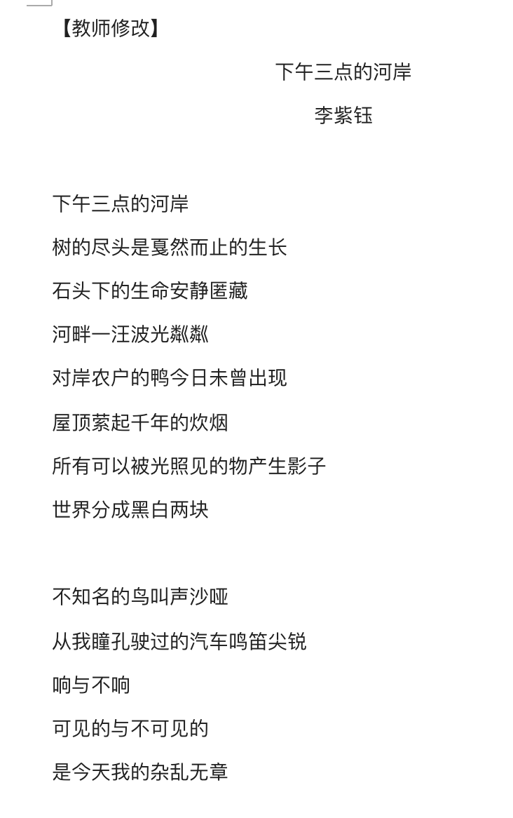 四、汉语191 李紫钰 诗歌《下午三点的河岸》,发于《文学纵横》2022年40期