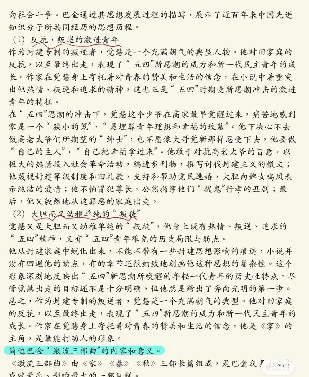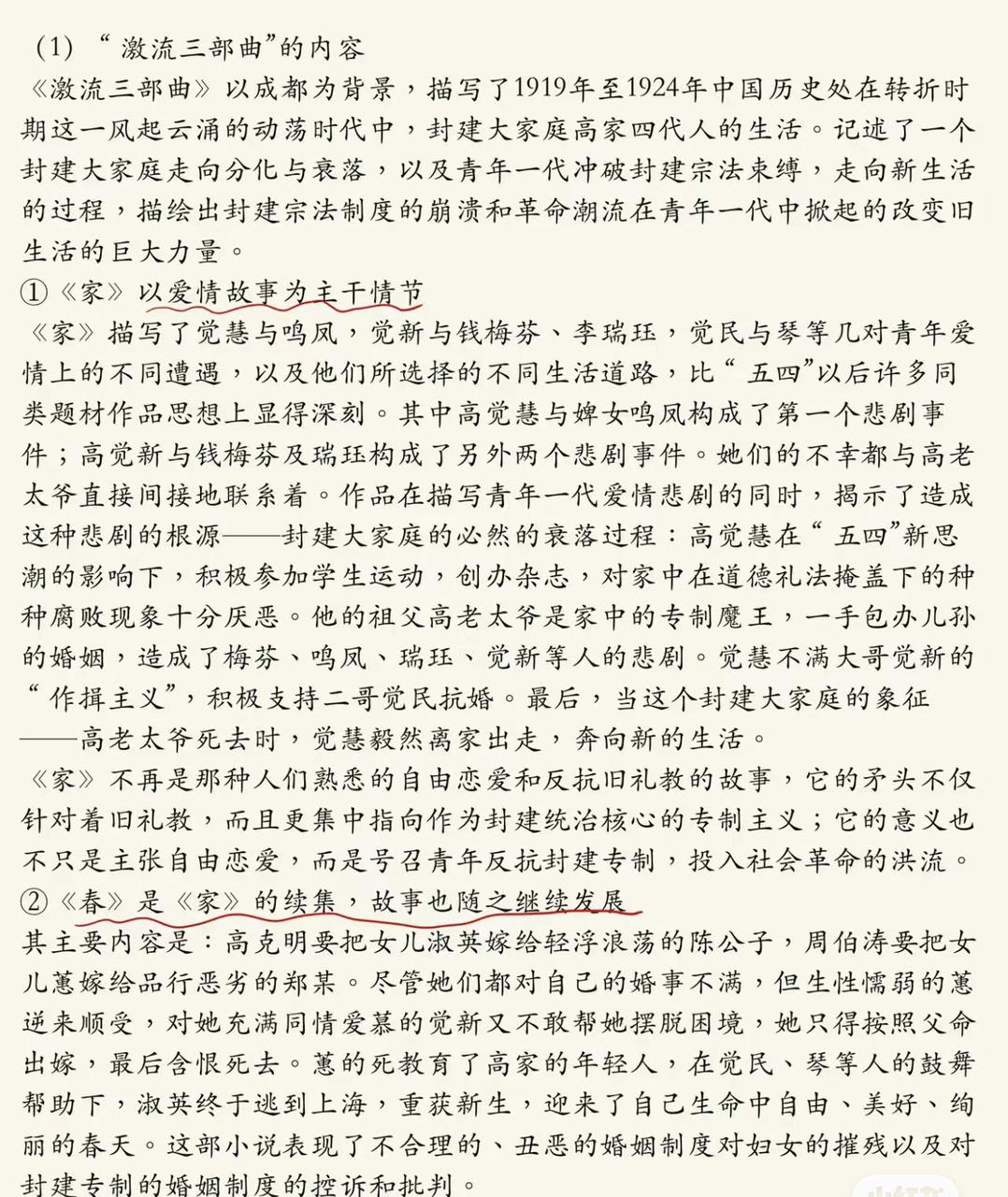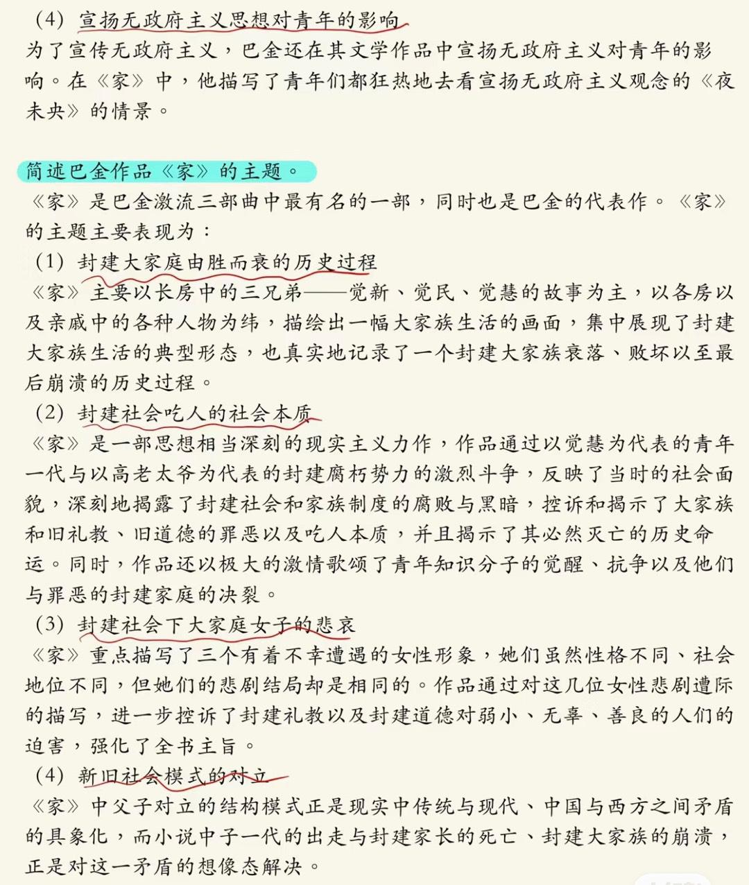 2.结合作品,具体论析《家》中以高家为代表的封建大家庭必然崩溃的历史趋势。