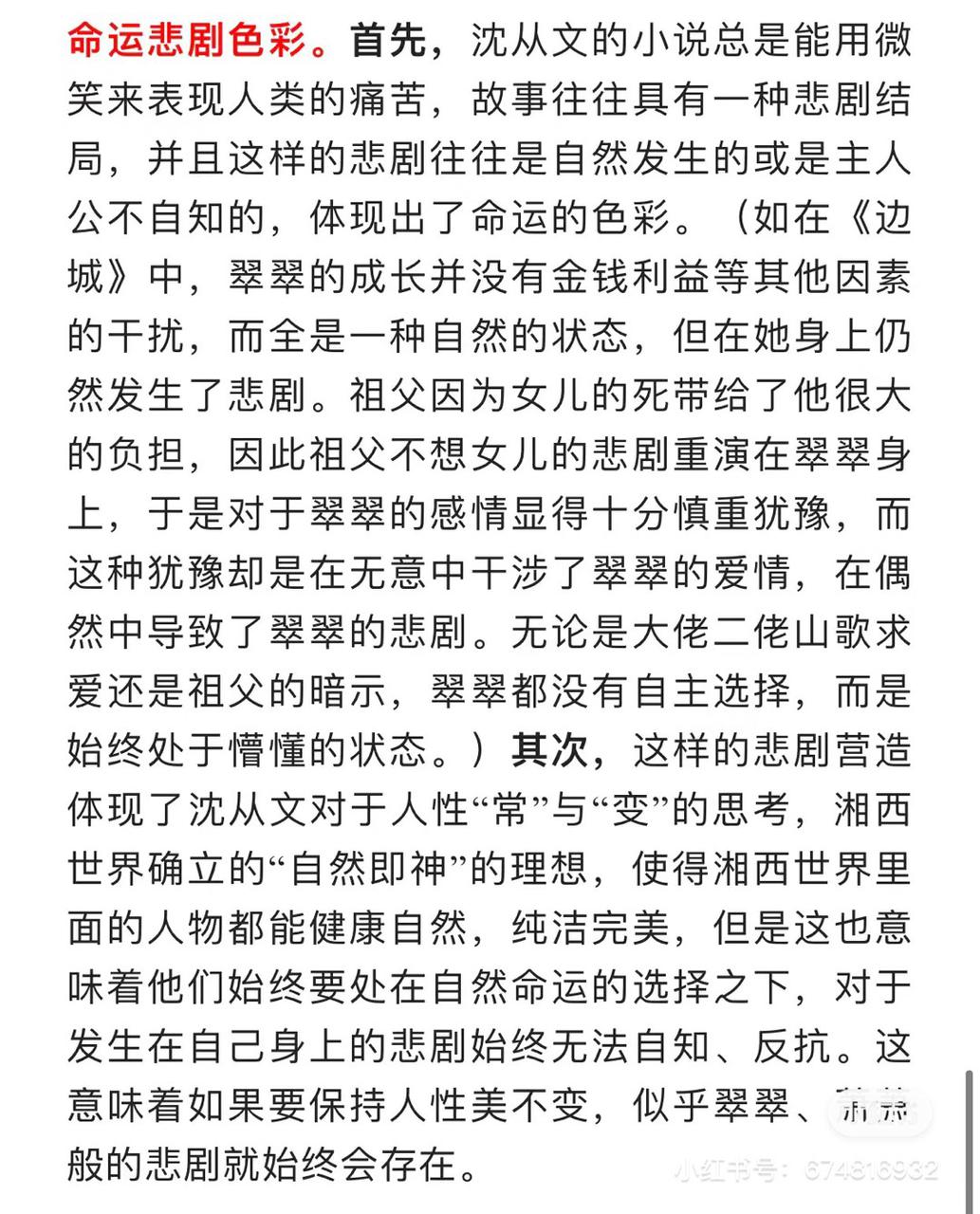 沈从文《边城》所追求的美好人生形态虽然与现实社会有着相当的距离,但它毕竟体现了作家的一种执着的理想和信念,这本身就是很有人性价值的。