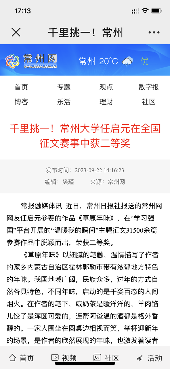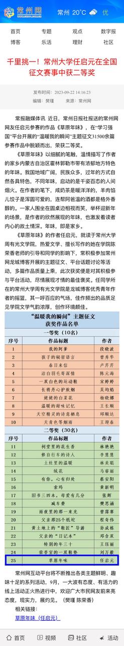12 | 211张婧圆 | “人世间”征文优秀奖 | 常州市互联网新闻中心 https://blog.cz001.com.cn/index.php?c=Blog&m=detail&id=132011&s=normal |