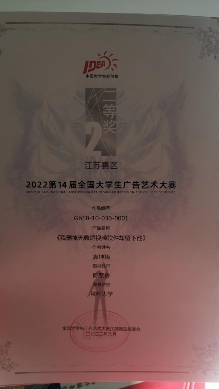 4 | 201袁坤堉 | 2022第十四届全国大学生广告艺术大赛江苏赛区省赛二等奖 | 中国语文报刊协会读写教学分会 第四届全国大学生语言文字能力大赛组委会 |