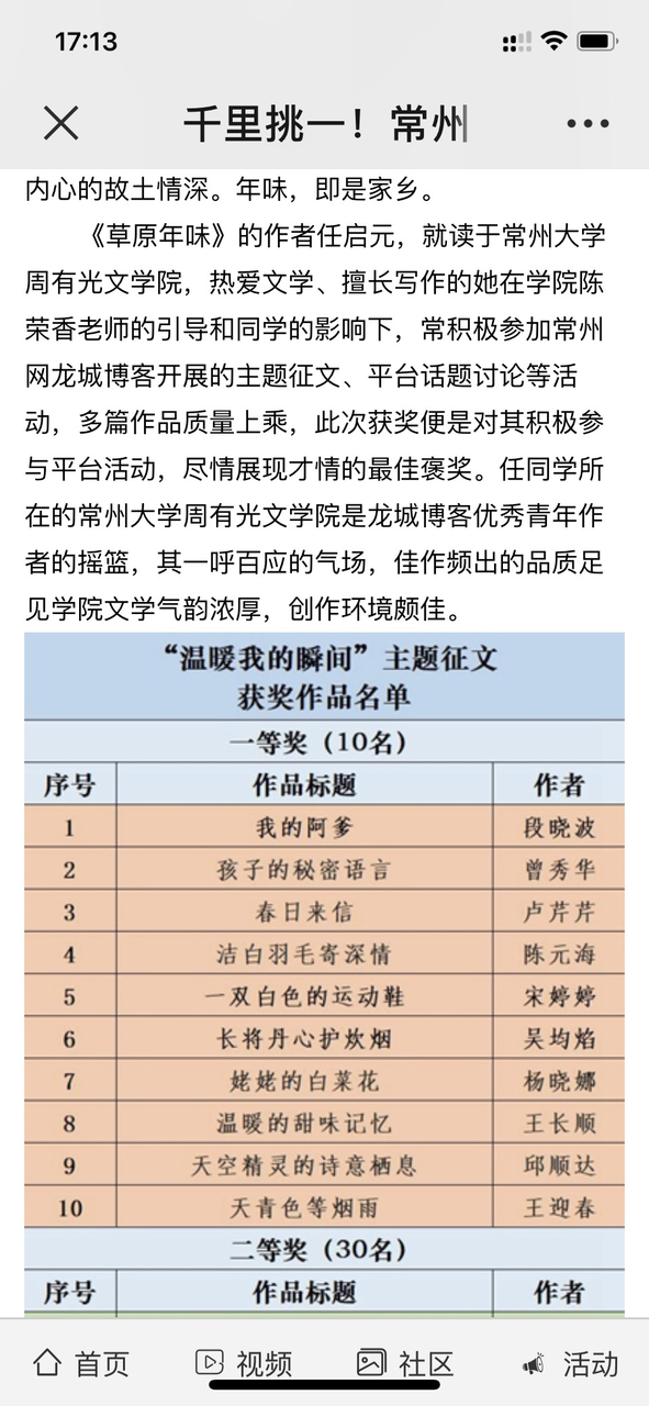 11 | 194李恬 | “人世间”征文优秀奖 | 常州市互联网新闻中心 https://blog.cz001.com.cn/index.php?c=Blog&m=detail&id=132011&s=normal |