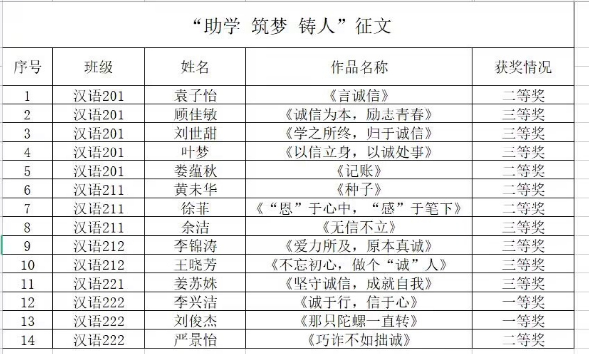 序号 | 班级 | 姓名 | 发表作品 | 体裁 | 发表报刊 平台 | 发表日期 |