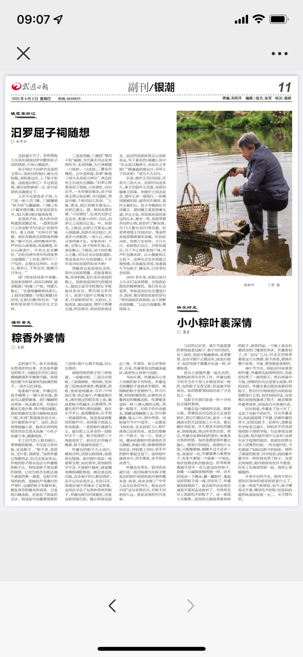 14.汉语19杨鑫同学的文章发表:《端午归思》发于《武进日报》2021-06-11 http://epaper.cz001.com.cn/site1/wjrb/html/2021-06/11/content_404148.htm