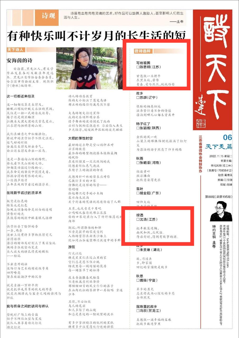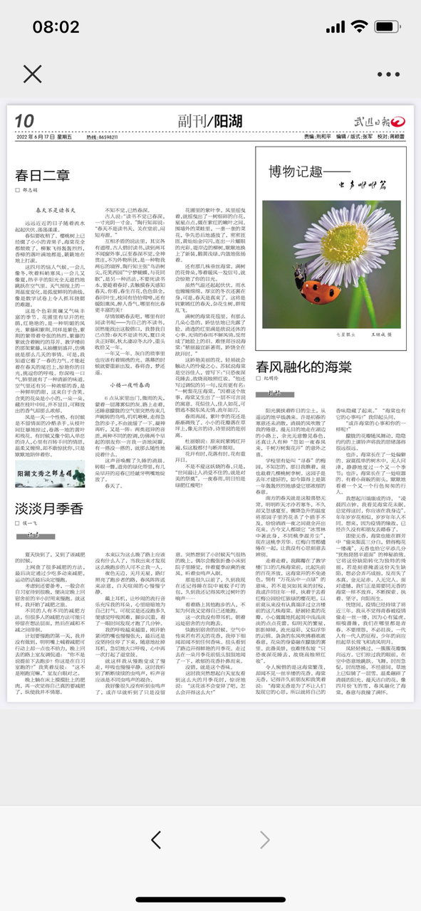 2022 4金子惠征文 常州网选送; 徐佳依消息新华日报; 张志魏 2诗两首,青春杂志