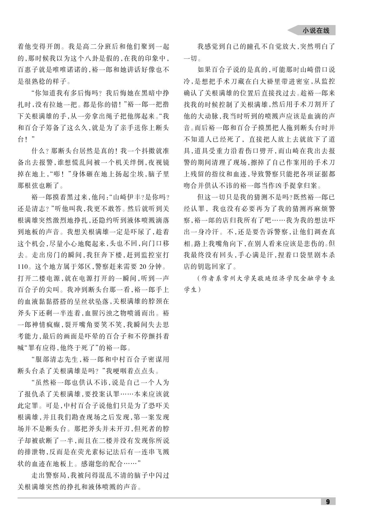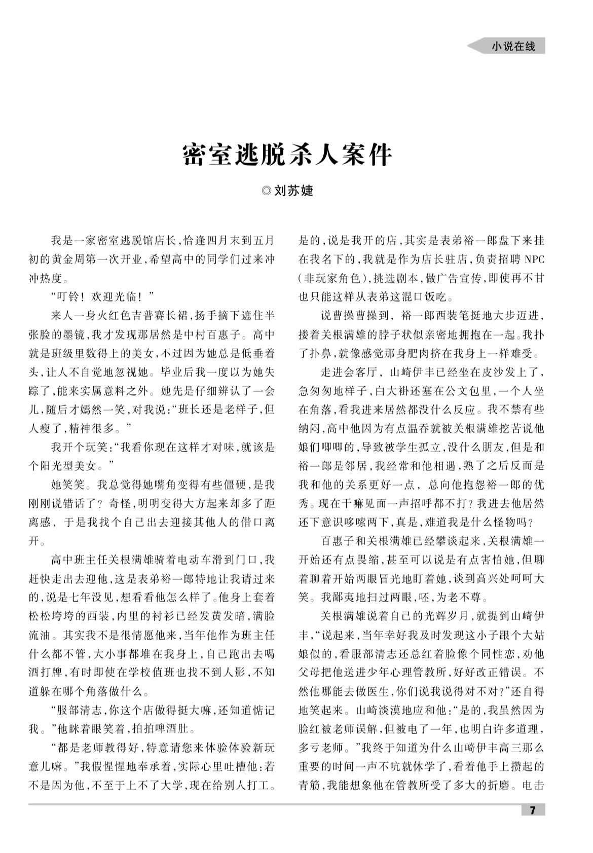 金融211刘苏婕《密室逃脱杀人案件》,文学纵横 ,2022年41期。