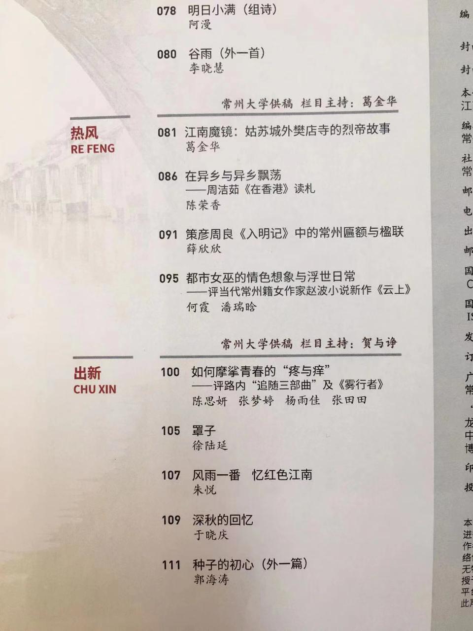 11 汉语191林嘉倩 卡夫卡小说中的底层女性形象 翠苑.2022年第6期. 黄杭西 12 汉语22? 柳佳祺 重拾日常生活中的“文学之心”——试读邵栋《空气吉他》 翠苑.2022年第6期. 贺与诤