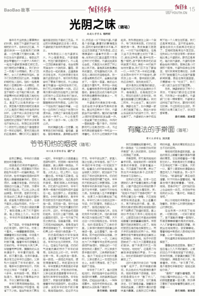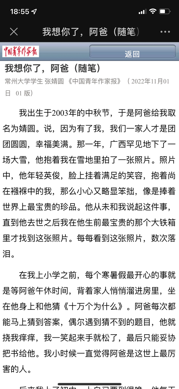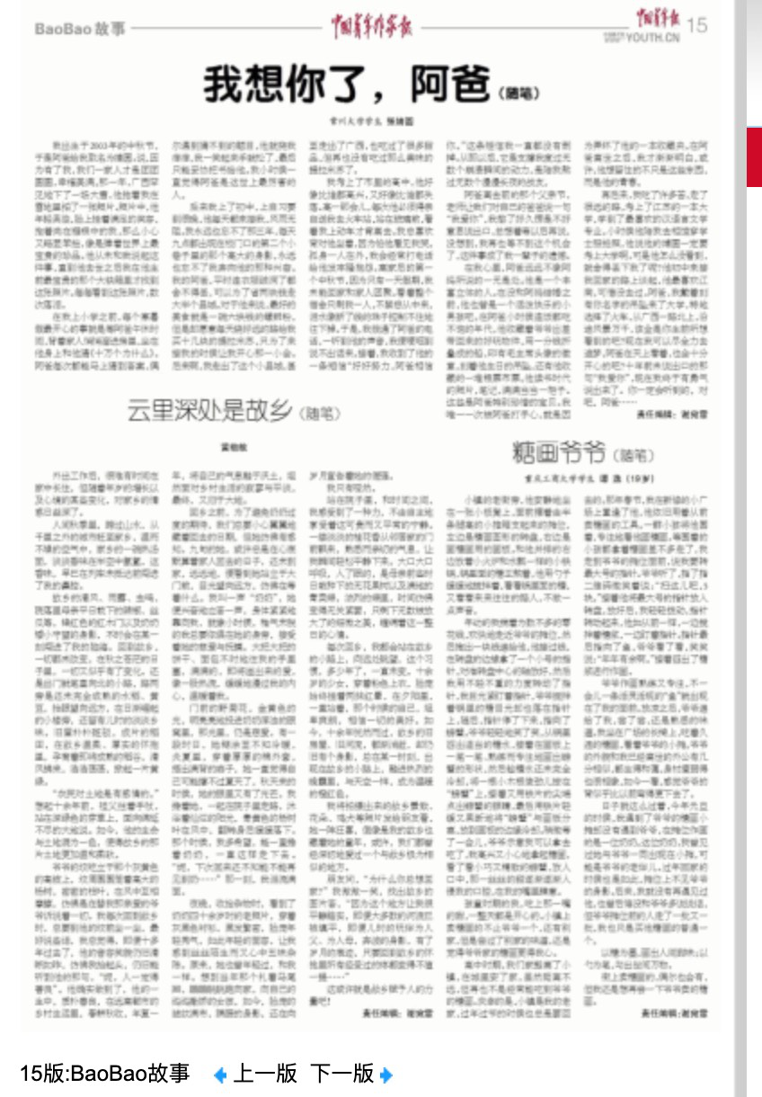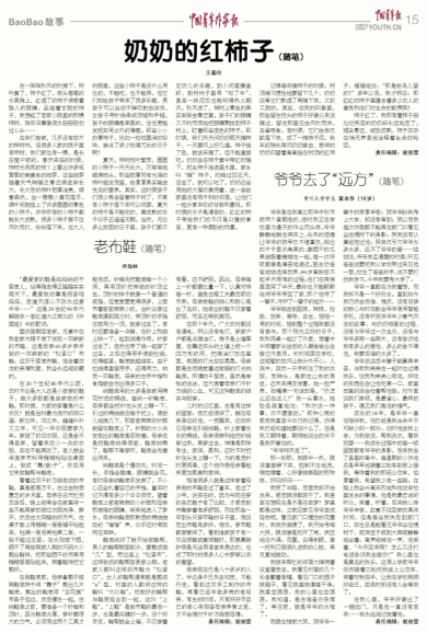 现当代文学散文写作作业发表于国家级刊物《中国青年作家报》祝贺张婧圆