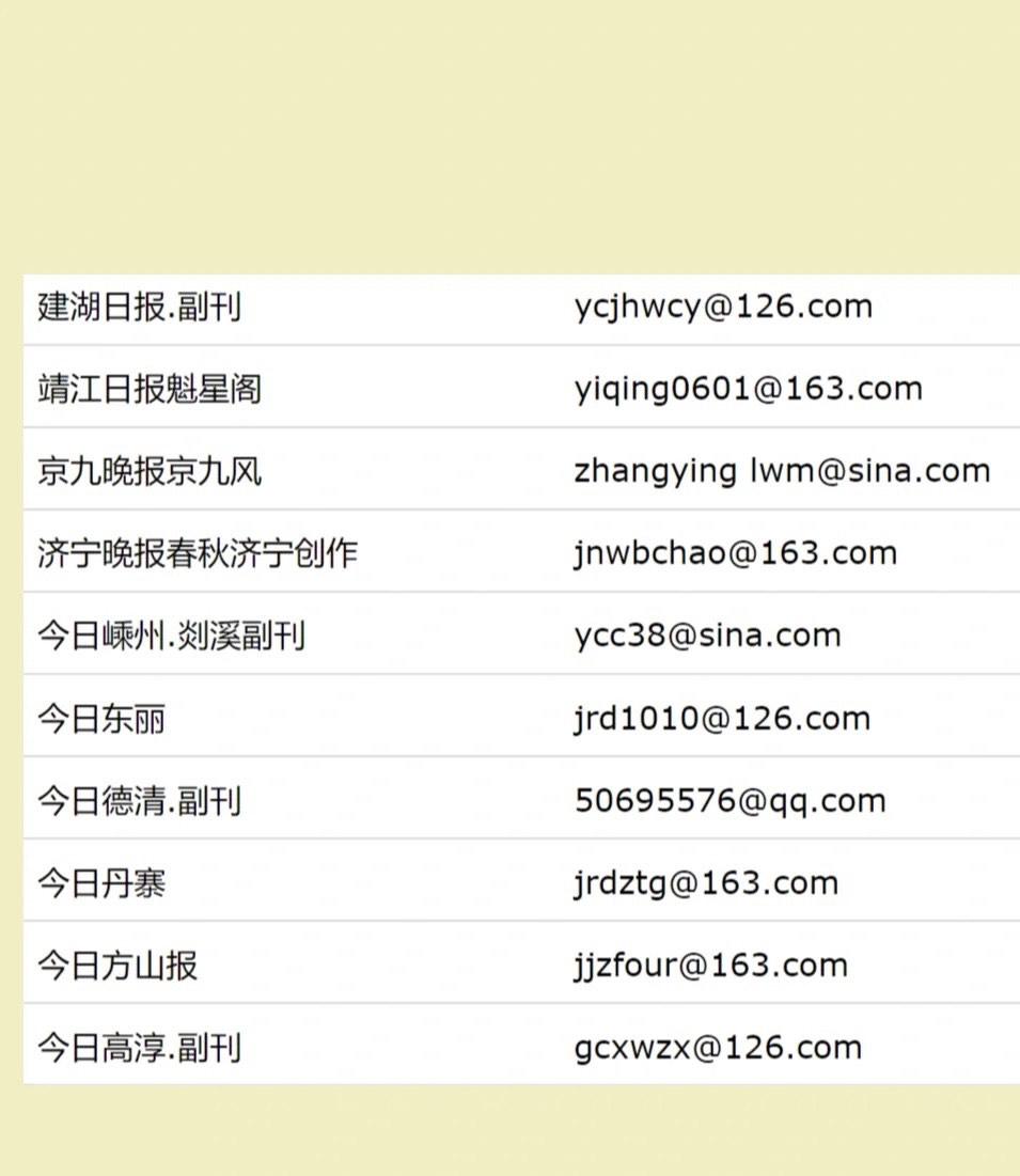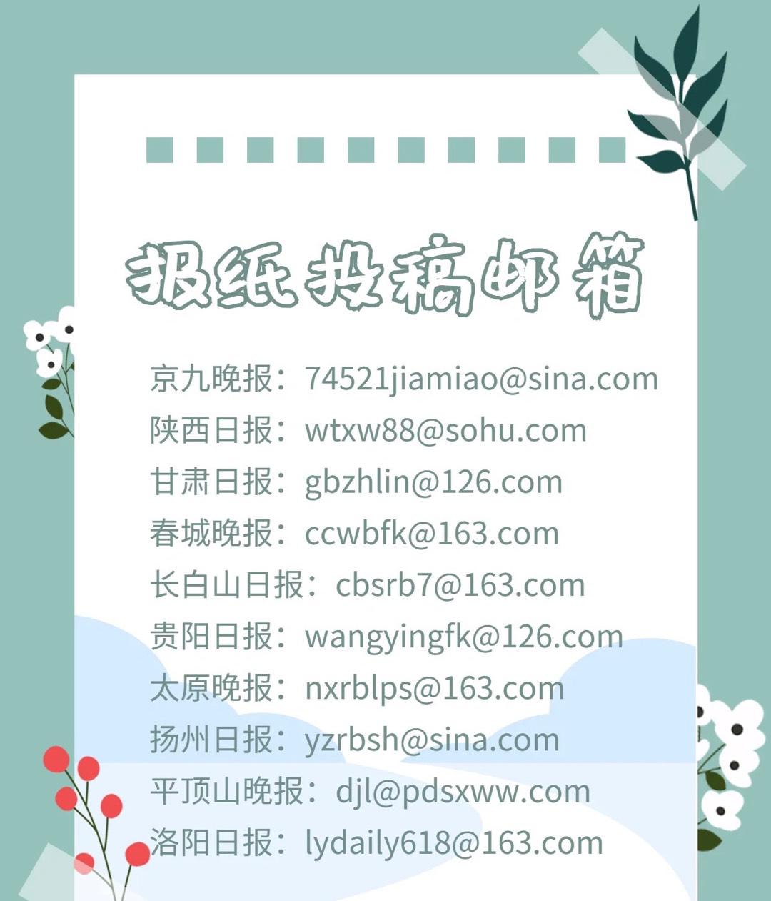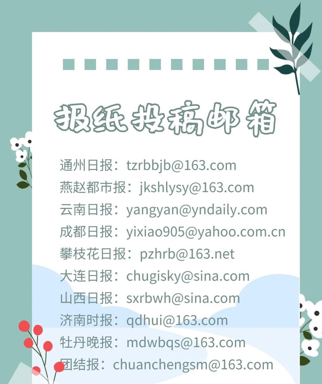 ycwbfk@163.com盐城晚报登瀛副刊邮箱