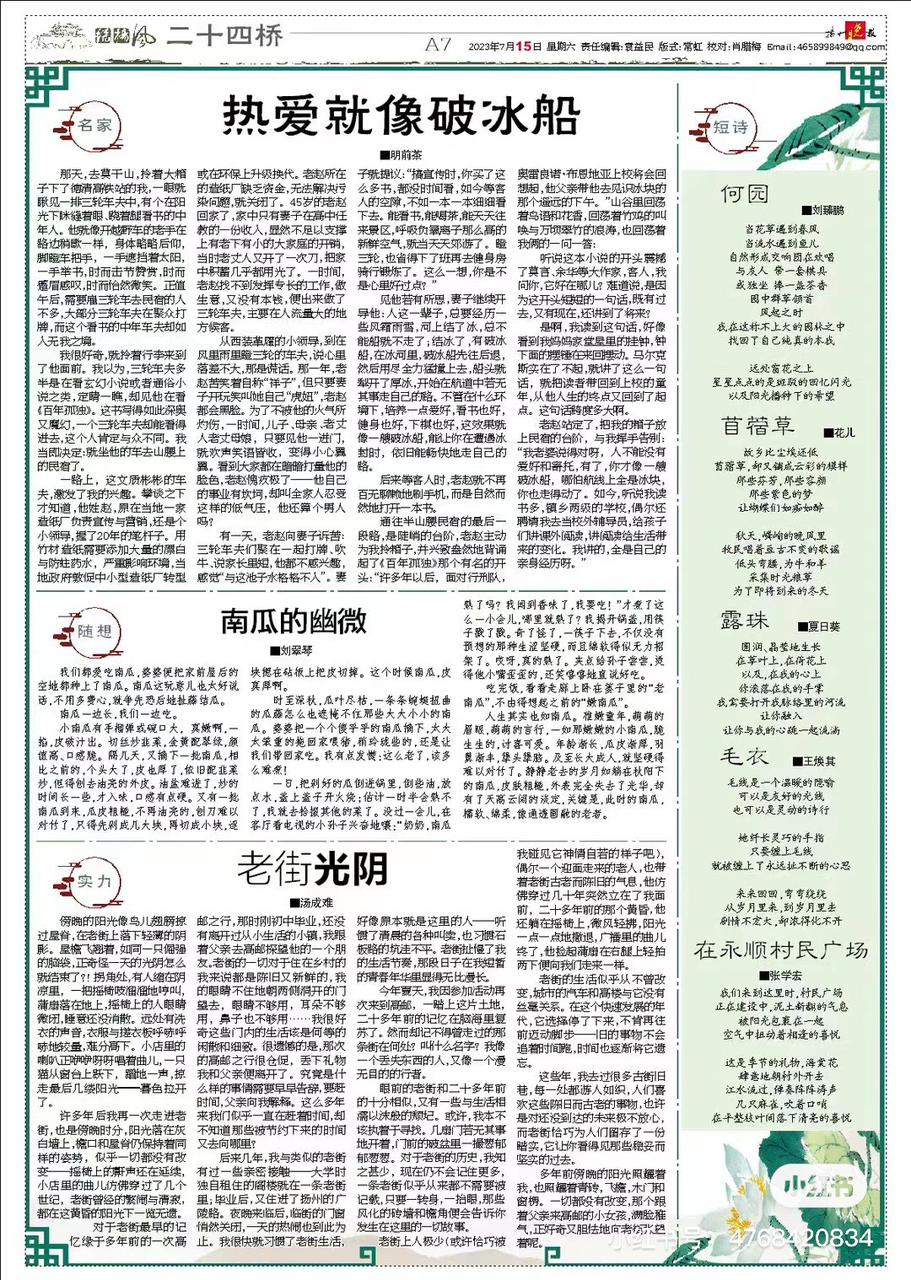 常州大学学生 刘天若 《中国青年作家报》( 2022年11月15日 15 版)