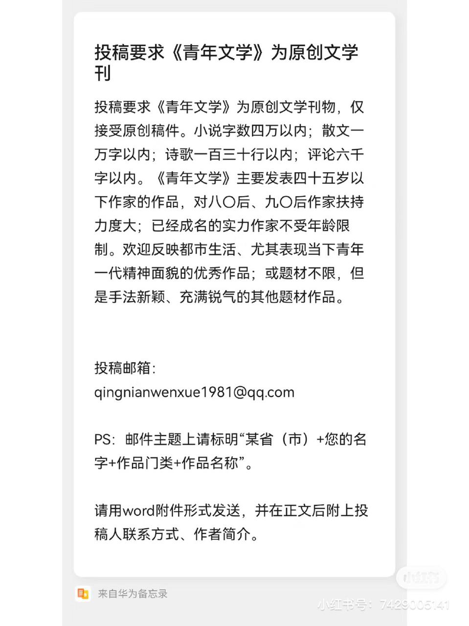 注:应该是编辑独立组稿,任何体裁稿件可投至任一位编辑王宗坤:wangzongkun 2006@163.comqingnianzuojia2013@126.com注:诗歌只发外一首,稍稍关注就可,重点关注《草堂》吧。邮箱可信度:★★★上稿难度:★★★★