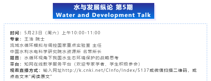 5月23日丨王浩院士:水循环视角下我国水生态环境保护的战略思考