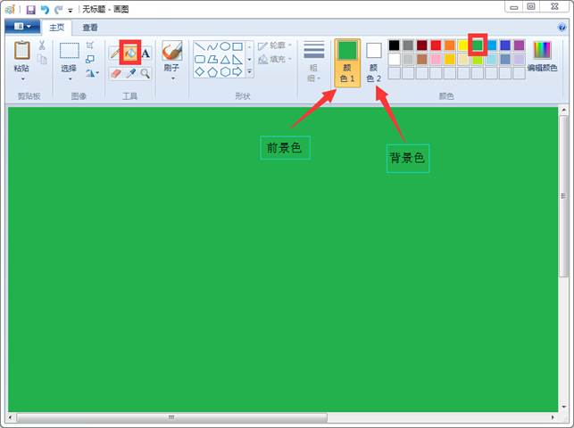 ,在画布上单击鼠标左键,画布的前景色就会变为绿色了(如图3一2一2)。