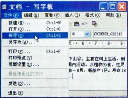 (3)保存文档。单击菜单栏中的“文件"→“保存"(如图2一3一5),在打开的对话框中选择存放位置,输入文件名,单击“保存"按钮。