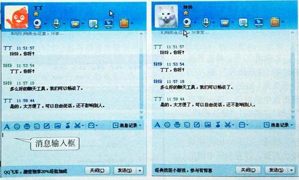 这是丁丁和玲玲利用QQ聊天的画面,和打电话一样的方便哟!