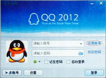 1.启动QQ程序。双击桌面上的“腾讯QQ "图标,启动QQ程序,出现QQ 登录界面(如图2一6一2)。