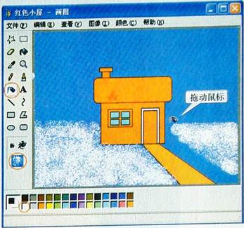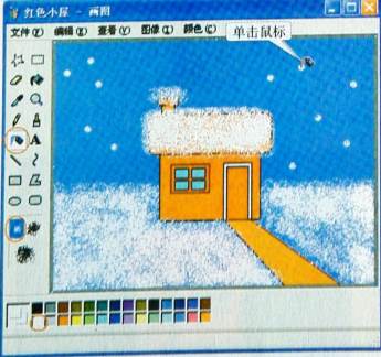 丁丁已经把红色小屋画好了(如图3一6一2),但是不知道用什么工具来画雪花。看看工具箱里哪个工具合适呢?