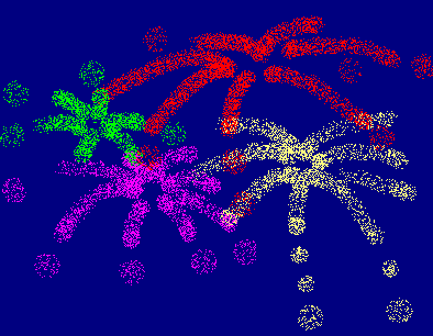 试着用喷枪工具完成图3一6一5所示的图画。除了节日的焰火外,还有什么适合用喷枪工具来画,想好了,就画下来。
