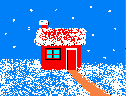 4、画天上飘落的雪花。单击喷枪工具、选择最小的喷枪,不断地单击鼠标,形成一片一片飘落的雪花(如图3一6一4)。瞧,多漂亮的雪景啊!